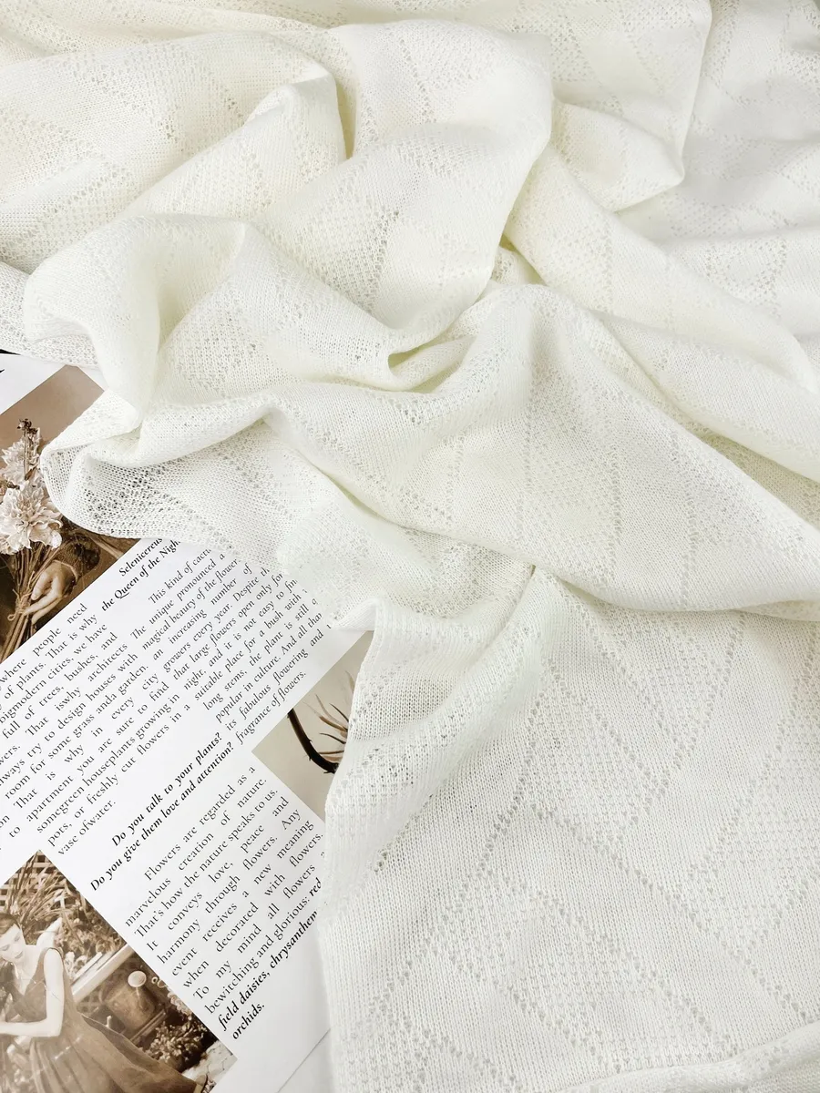 МОЛОКО - Ажурное вязаное полотно Состав: вискоза + полиэстер Плотность: 154гр/м2 Ширина: 153см