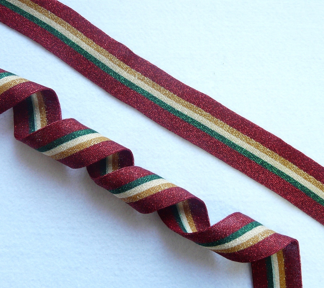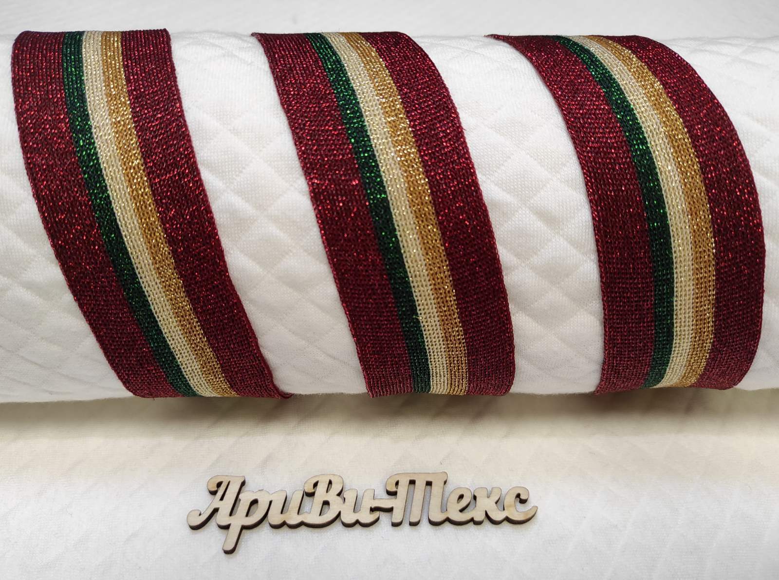 Лампасная лента (трикотажный, люрекс, 4,0 см). Бордовый/зеленый/бежевый, ВО