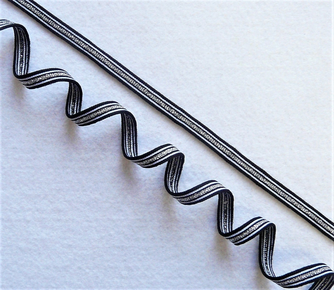Лампасная лента (трикотажный, люрекс, 1,0 см).Черный/белый/серебро, ВО