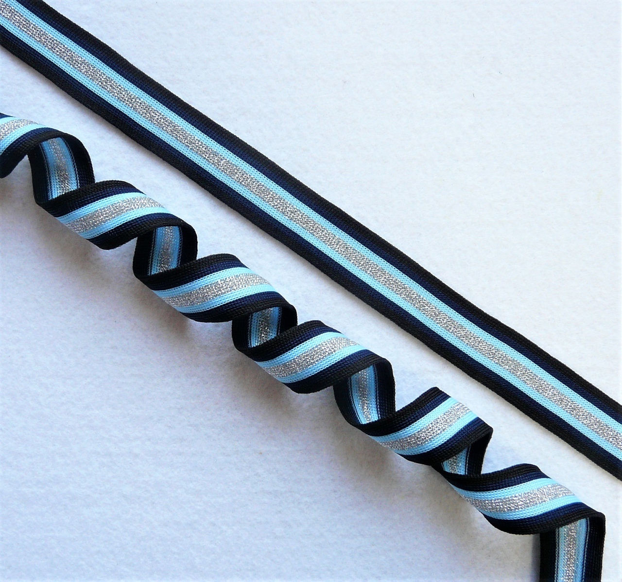 Лампасная лента (трикотажный, люрекс, 2,5 см). Черный/голубой/серебро, ВО