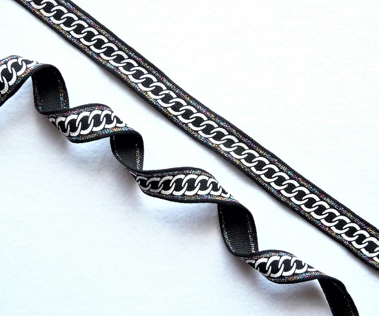 Лампасная лента (трикотажный, люрекс, 1,8 см). Черный/мультиколор Цепочка, ВО