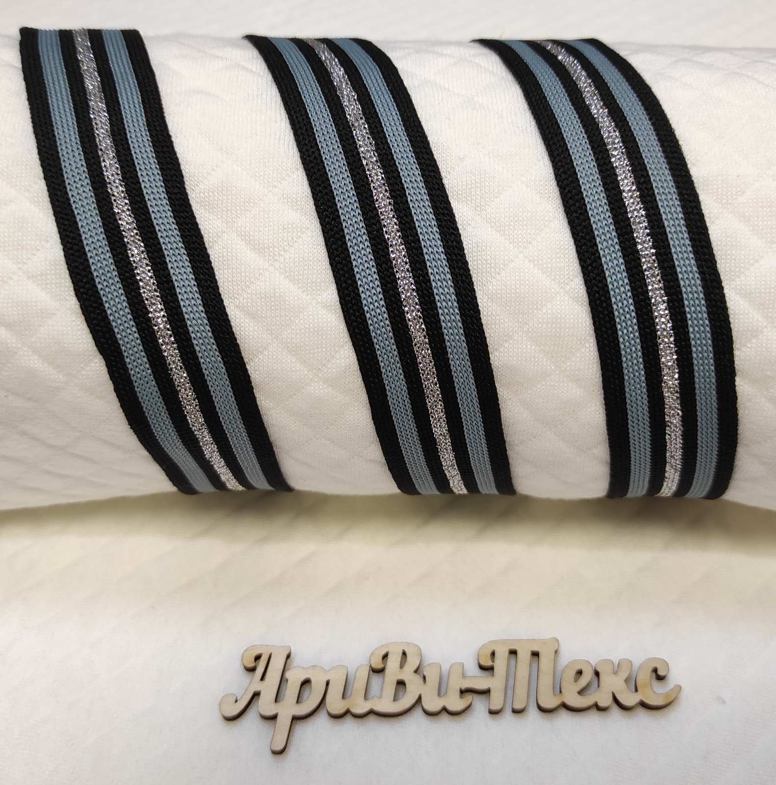 Лампасная лента (трикотажный, люрекс, 2,5 см). Черный/серый/серебро, ВО