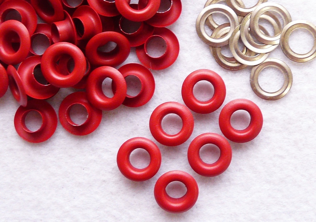 Люверс №5 (8мм), цвет- Красный матовый, эмаль/сталь, уп.-10 шт