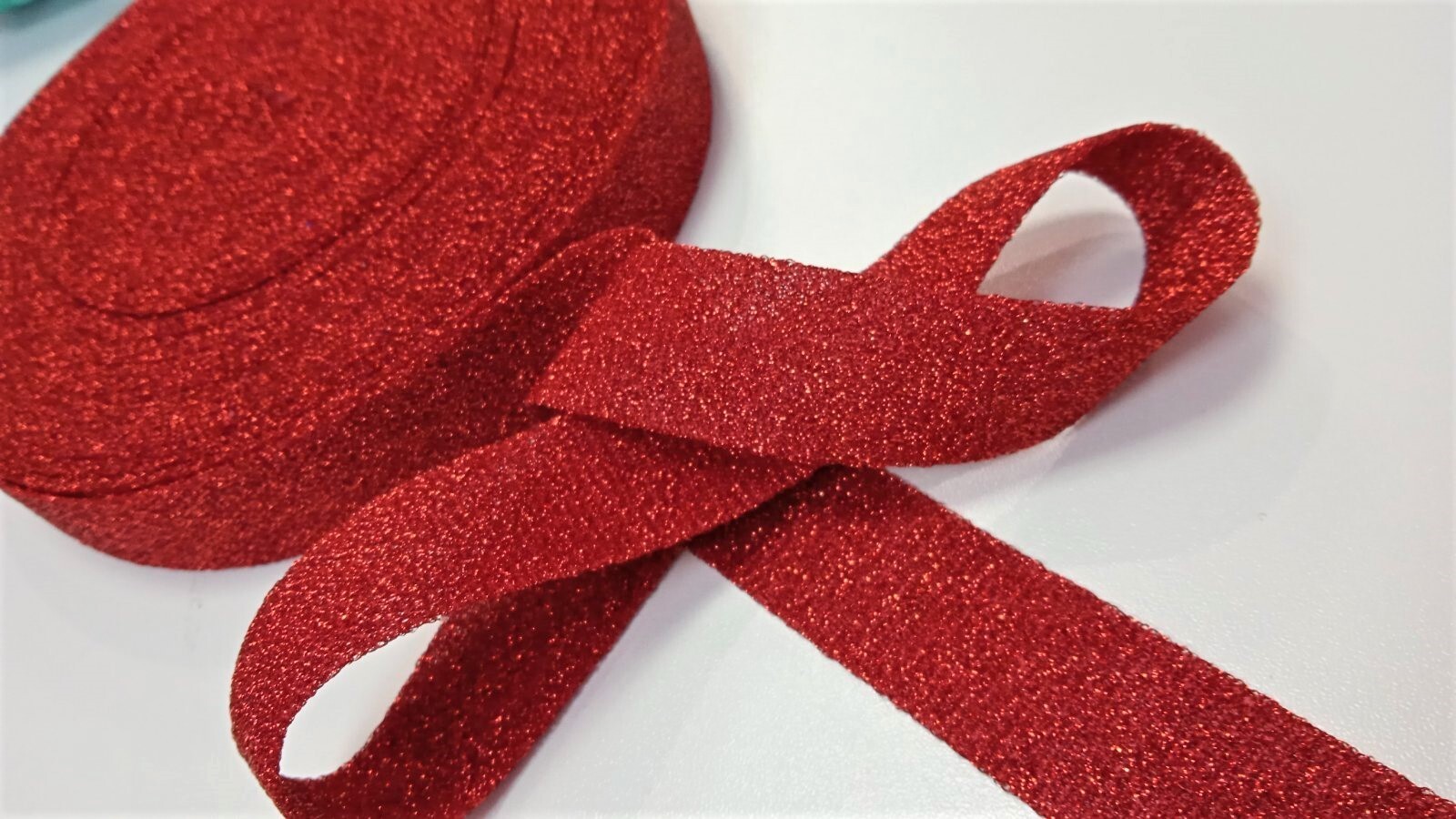 Лампасная лента (трикотажный, люрекс, 2,5 см). Цвет- КРАСНЫЙ, ВО