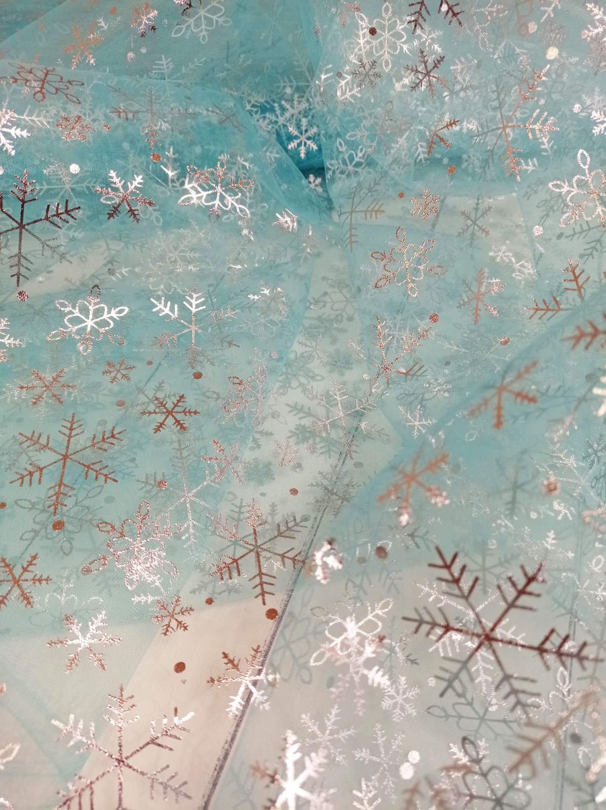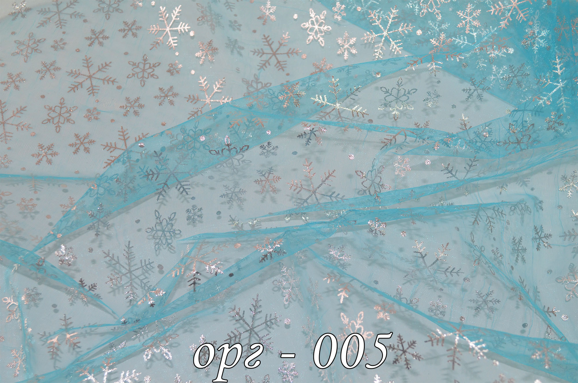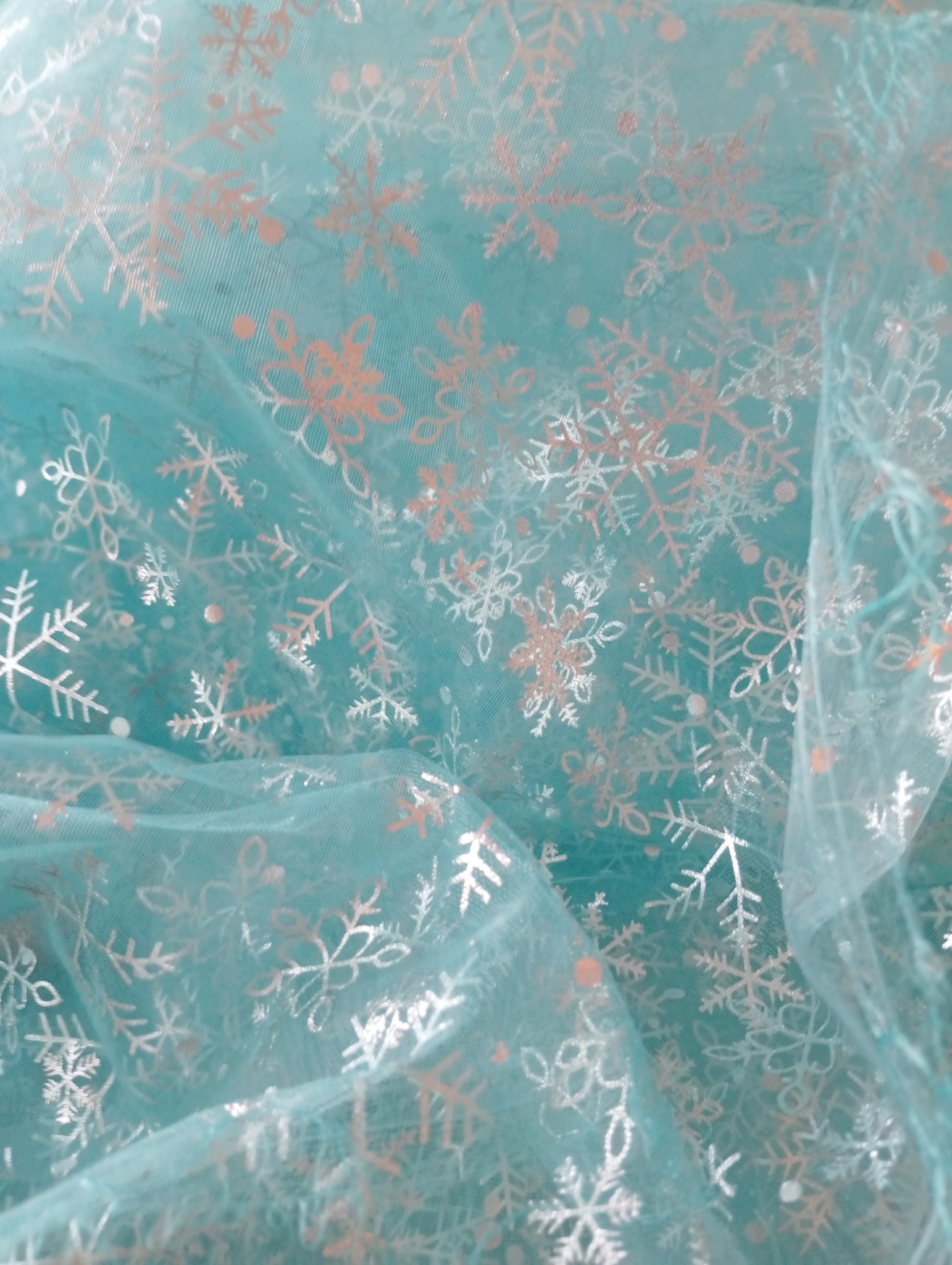 Органза снежинки БИРЮЗА, 1м