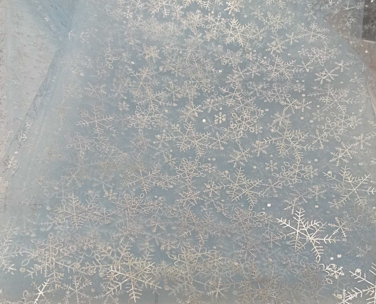 Органза снежинки ГОЛУБАЯ - отрез 1,2м