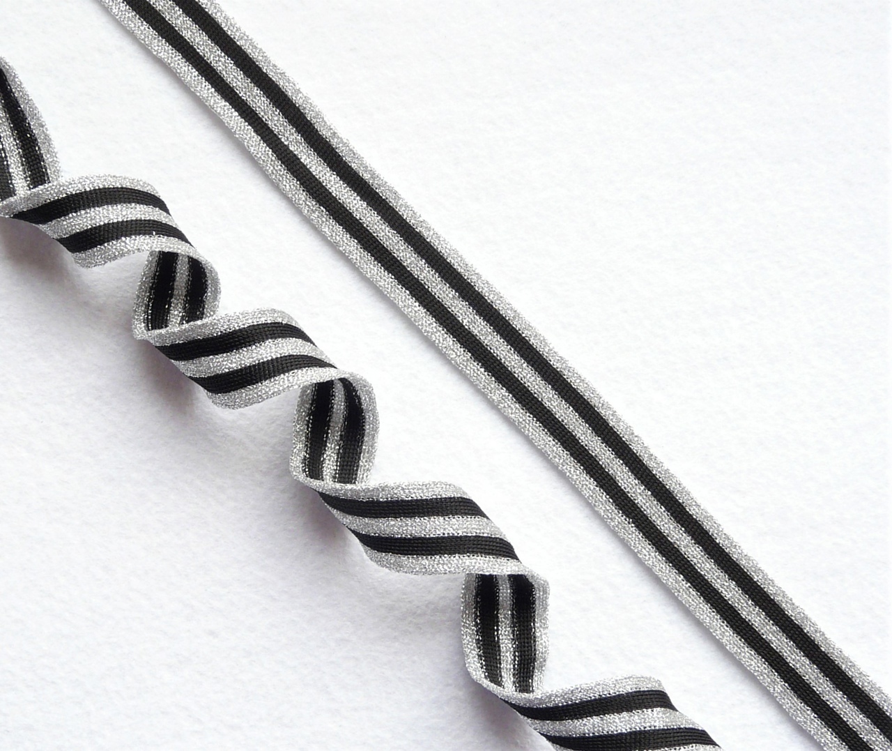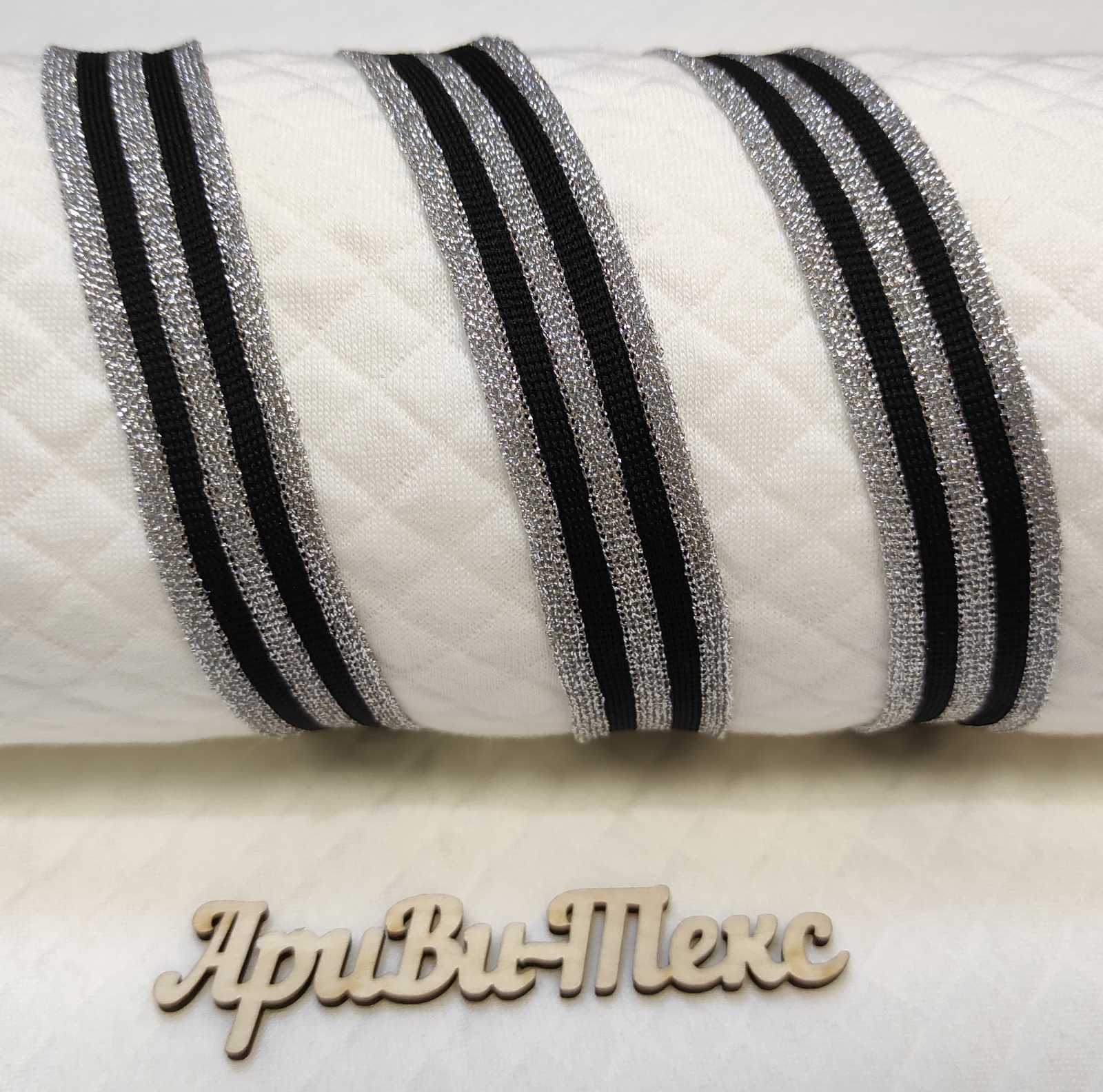 Лампасная лента (трикотажный, люрекс, 2,5 см). Серебро/черный, ВО