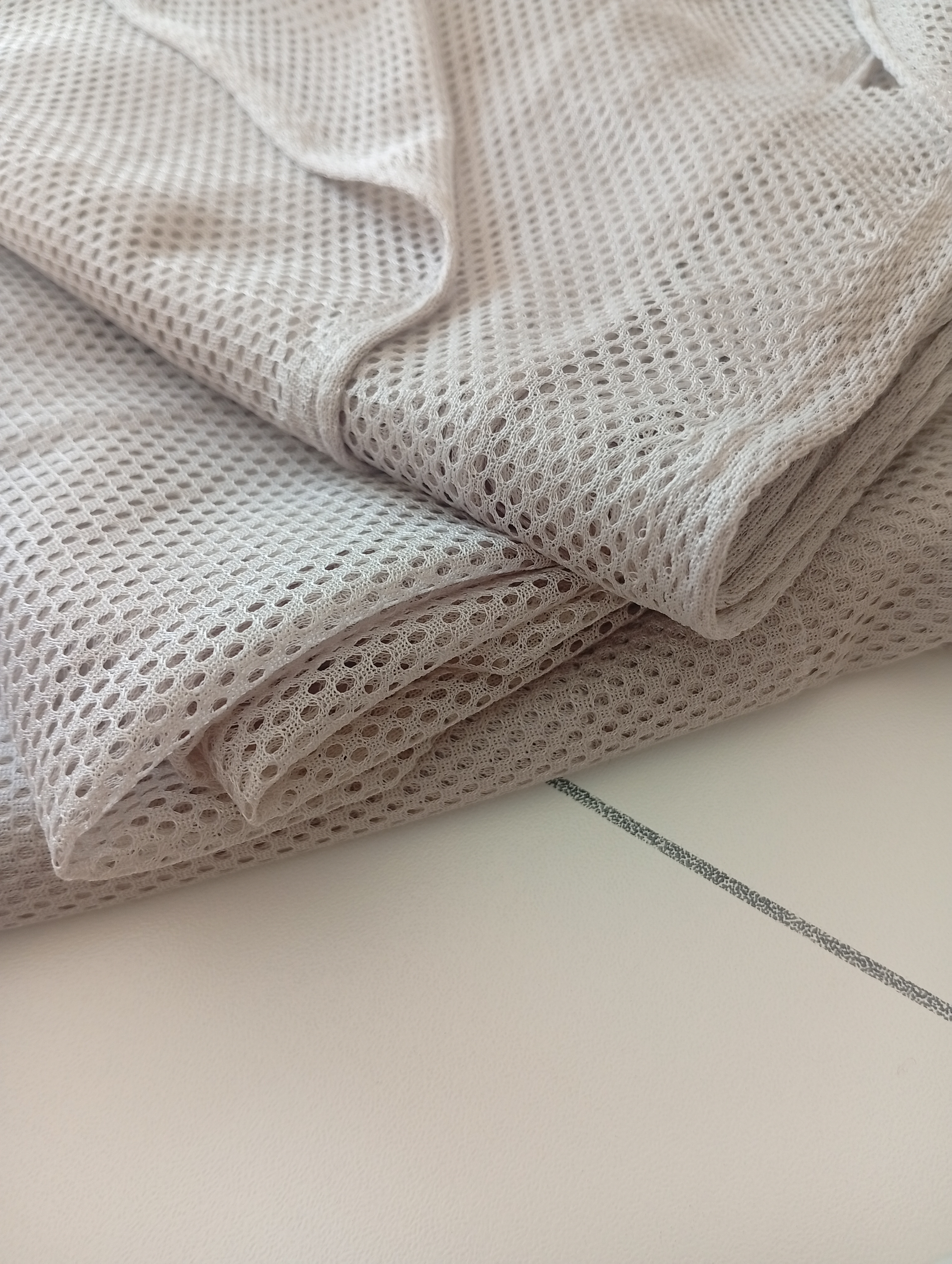 Тонкое, невесомое, полупрозрачное полотно со сквозной плетеной структурой. Полотно, состоящее из мелких овальных ячеек. Размер ячейки - 0,2 см.