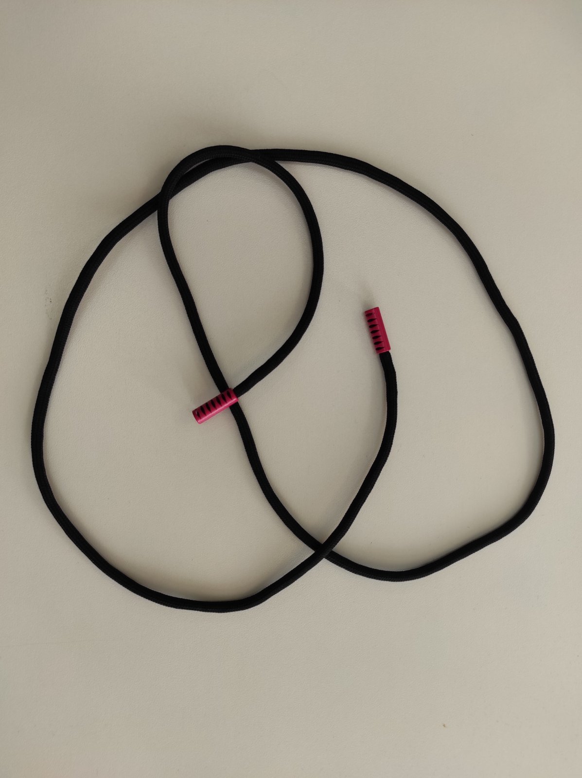 Шнурок с наконечниками. Черный с малиновым наконечником