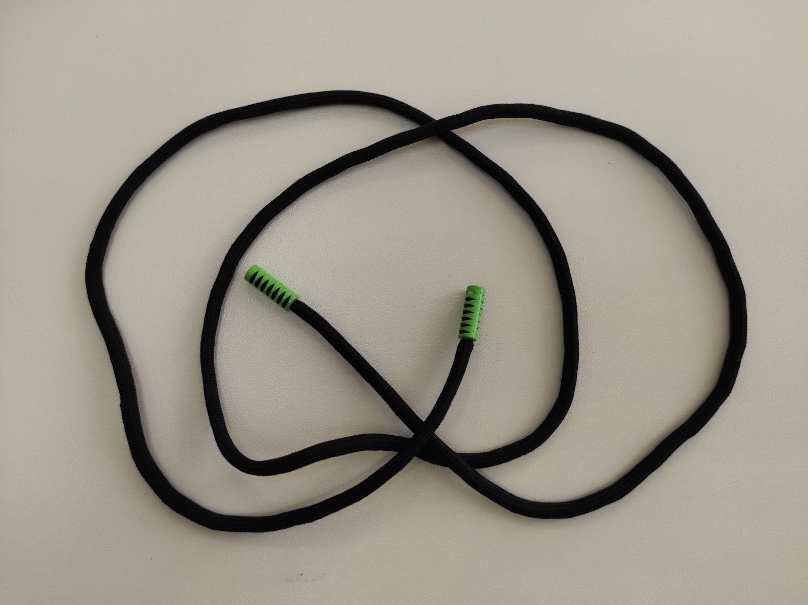 Шнурок с наконечниками. Черный с зеленым наконечником