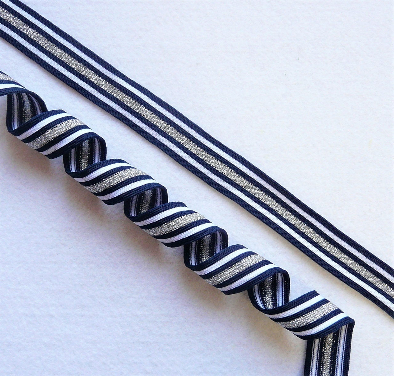 Лампасная лента (трикотажный, люрекс, 2,5 см). Т.синий/белый/серебро, ВО