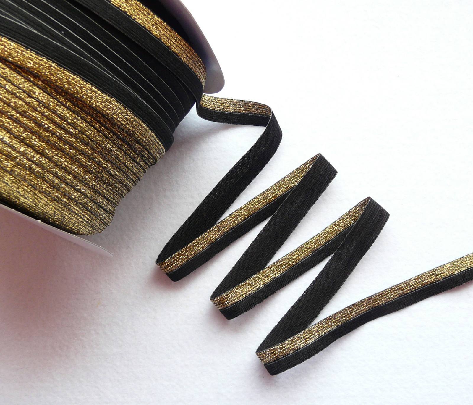 Бейка трикотажная (эластичная, 1,5см). Золото, люрекс на черном